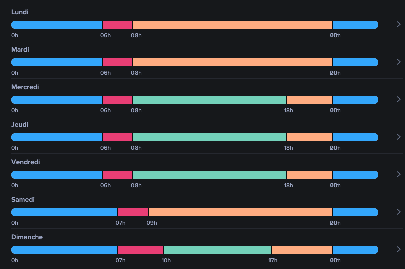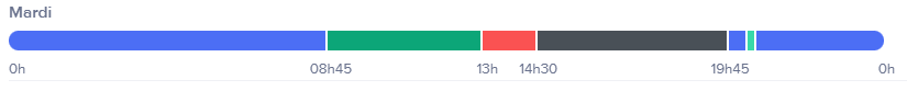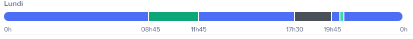 Exemple : je veux ajouter une plage (rouge) 13:00 - 14:30 à une journée comme le lundi
