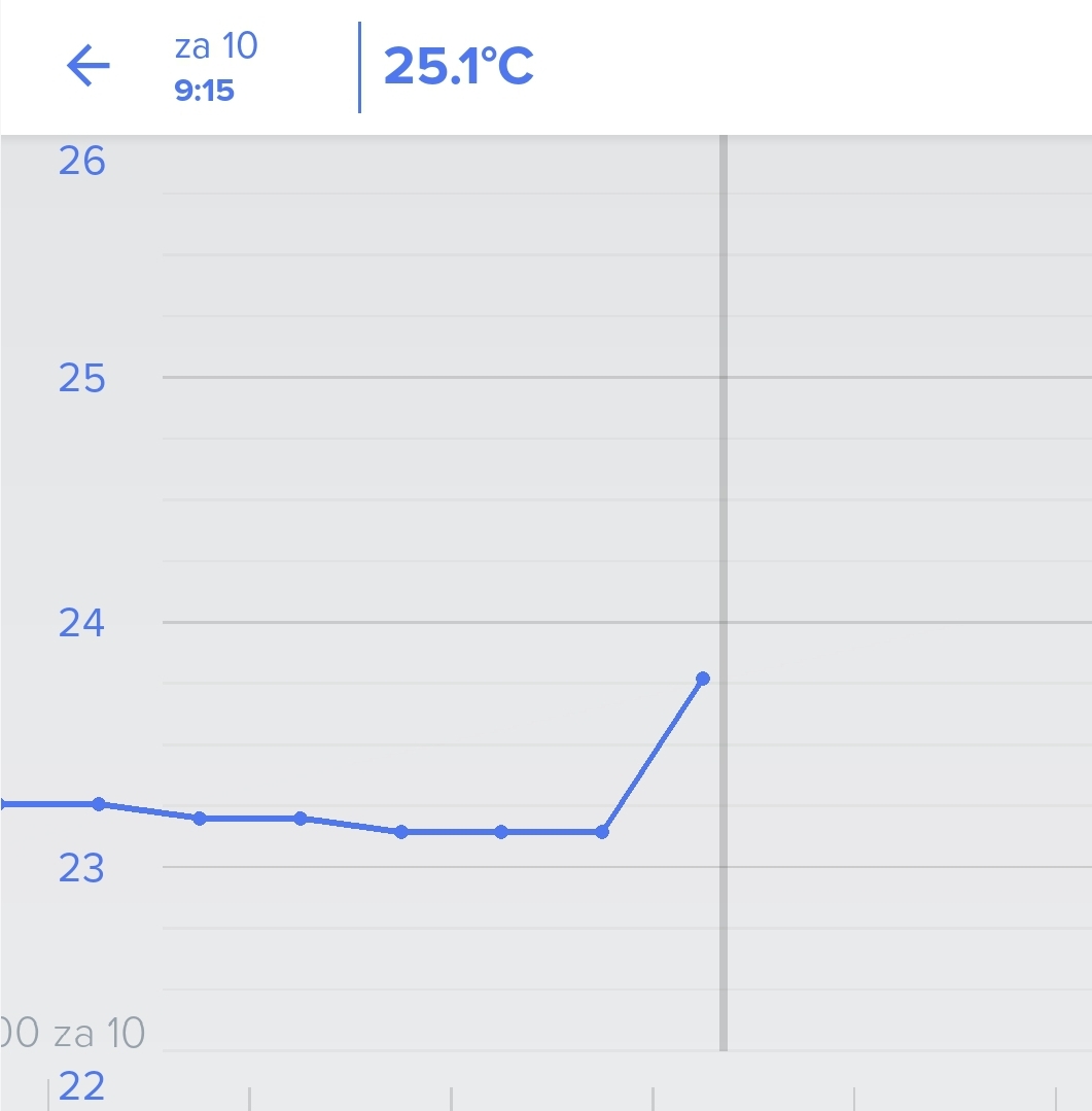 I was just looking at a temperature graph in the android weather app and noticed that the scaling of the graph is wrong. In the example below the measured temperature is 25.1°C but on the graph the dot is at about 23.8°C.