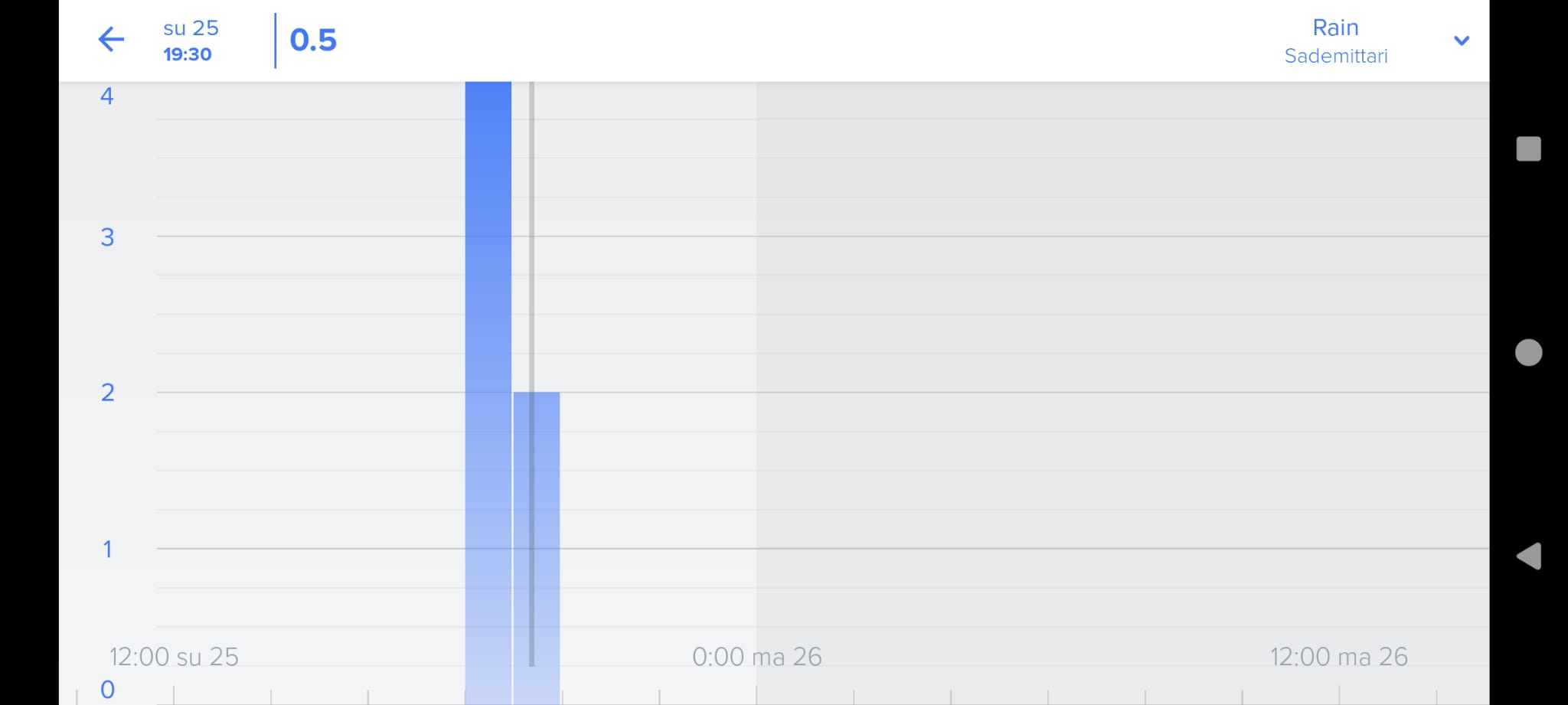Version 4.6.0.1 is now in Google Play but it does not solve the problem, not even after removing the app and reinstalling it. The temperature graph below shows a little less than 22 degrees even though the correct temperature is 22.3 degrees. A more extreme example is the rain gauge graph on the bottom, showing 2 mm according to the scale on the left even though the correct reading is 0.5 mm.