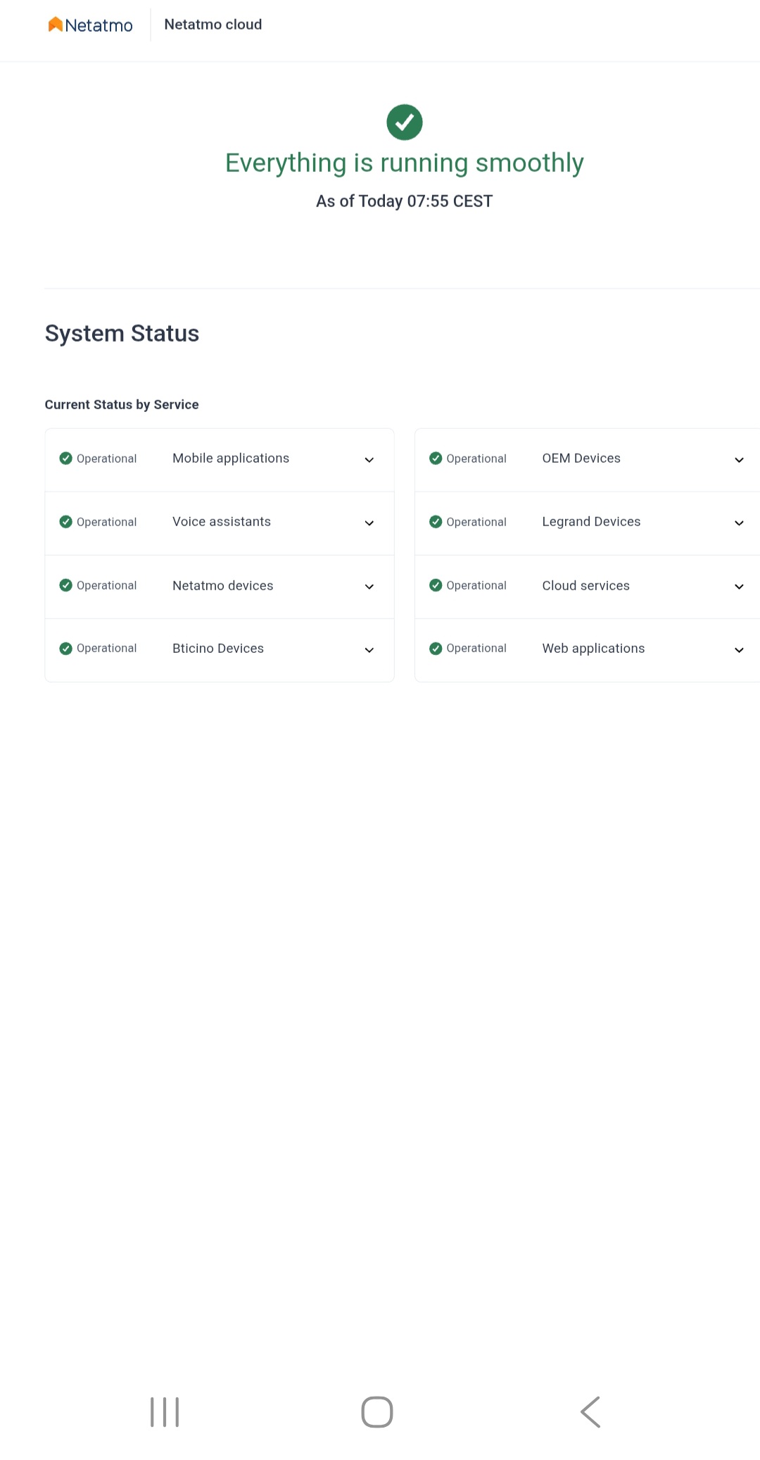 In case of major outage, a banner is displayed on the Netatmo helpcenter website. It's a manual operation