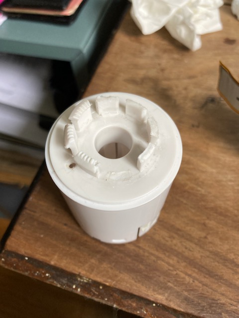 Je pense qu'il est possible de tenter une "réparation" en mettant des vis (4 au minimum) entre les ergots de manière à ce que leur tête retienne la bague filetée; de toutes façons, cassée pour cassée çà ne coûte rien d'essayer.