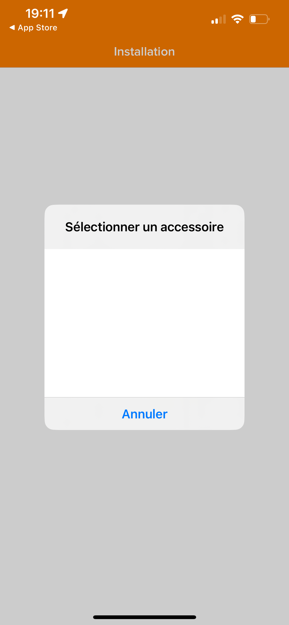 L'application affiche 'Sélectionner accessoire', mais rien ne s'affiche (voir pièce jointe).
