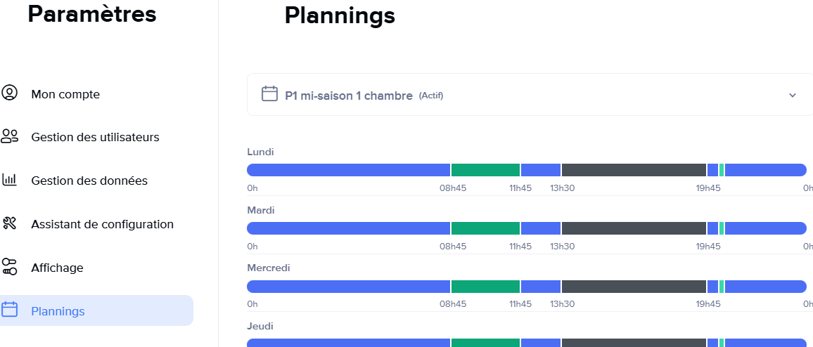 Le lien https://home.netatmo.com/settings/planning ne fonctionne pas, je suis redirigé vers la page d'accueil. Sur les settings, la page planning n'existe plus, il y uniquement :