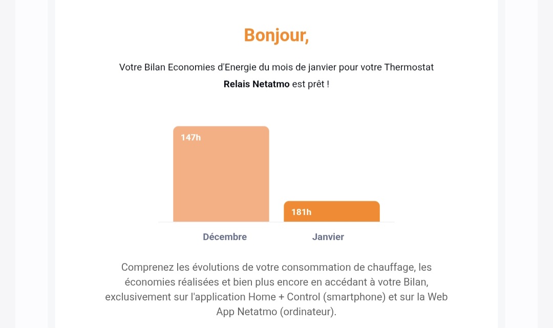 À partir de début novembre, vous recevrez un email vous invitant à les découvrir, que vous ayez un Thermostat ou un Starter Pack Netatmo (Pour ceux qui ont activé l'option dans les réglages de leur compte et qui ont validé celui-ci).