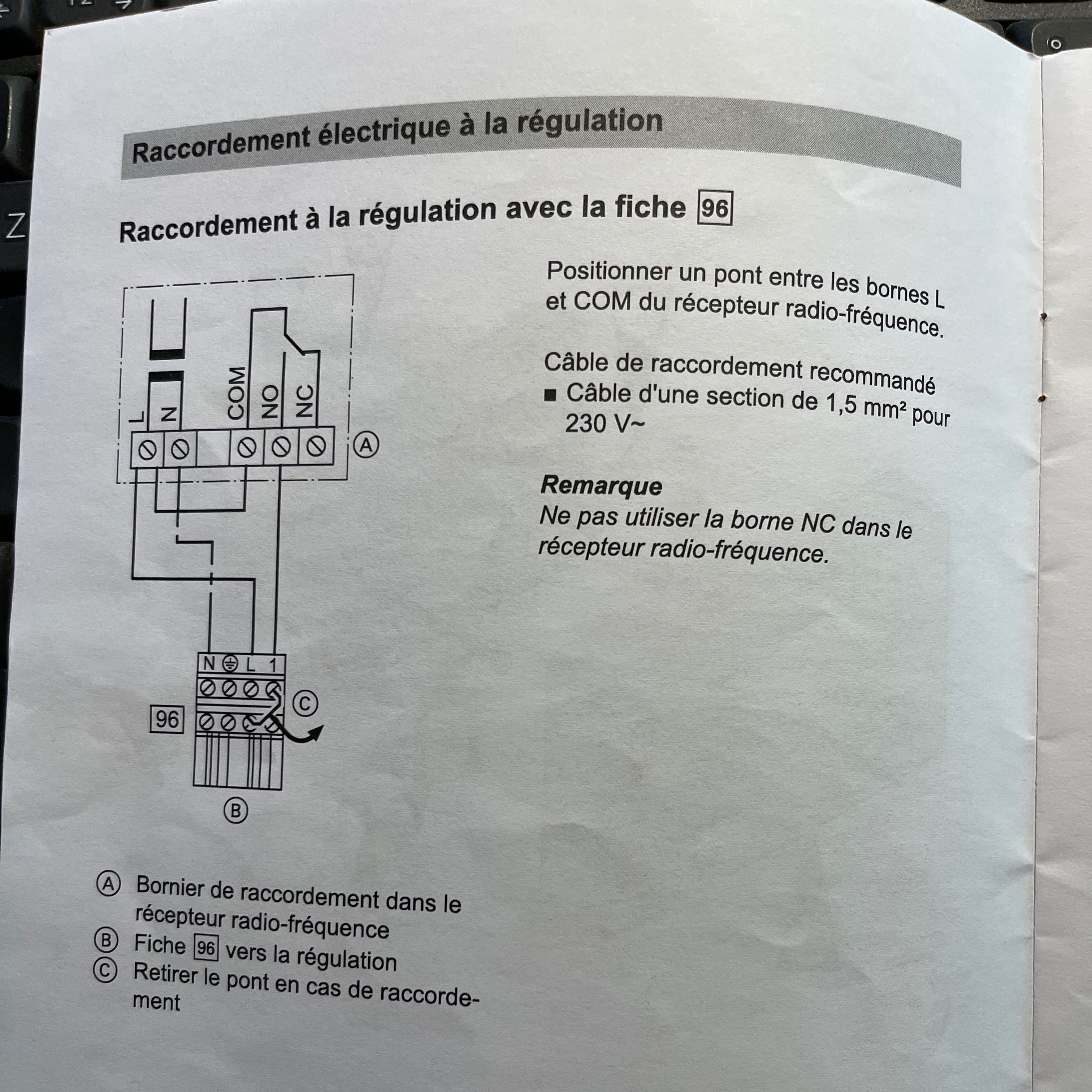 sur la fiche 96 sur quelle borne je dois connecter les 4 fils du relais netatmo ? la partie A correspond au relais actuel du thermostat Vitotrol.