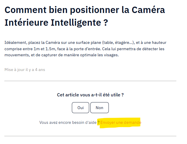 Pour nous contacter, il est obligatoire de passer par un article de l'assistance et de cliquer sur le lien "Envoyer une demande" en bas de page.