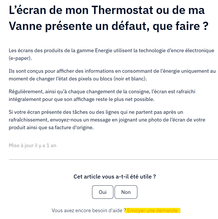 Je vous invite à suivre ce lien : L’écran de mon Thermostat ou de ma Vanne présente un défaut, que faire ?
