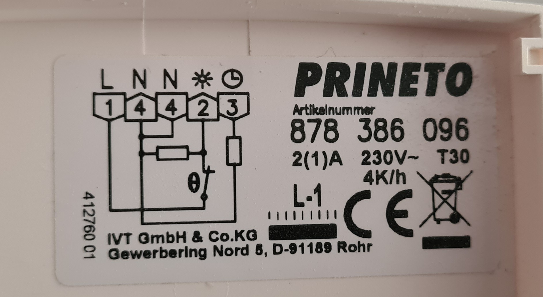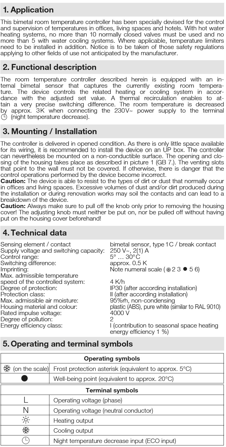 data sheet of the old room thermostat