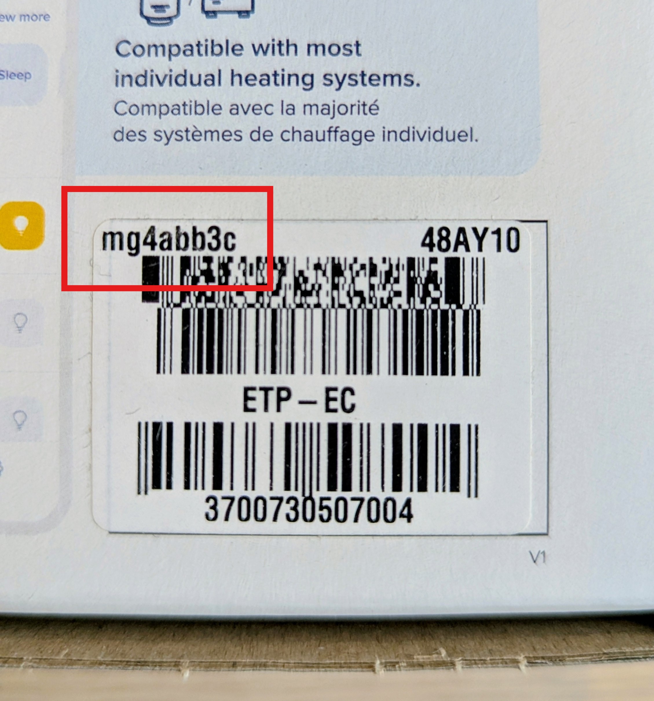 - Le numéro de série du Thermostat peut être vu sur son emballage :