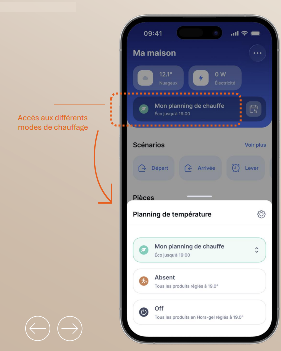 Pour modifier le mode de chauffage sur l'app Home+Control, merci de suivre ces instructions :