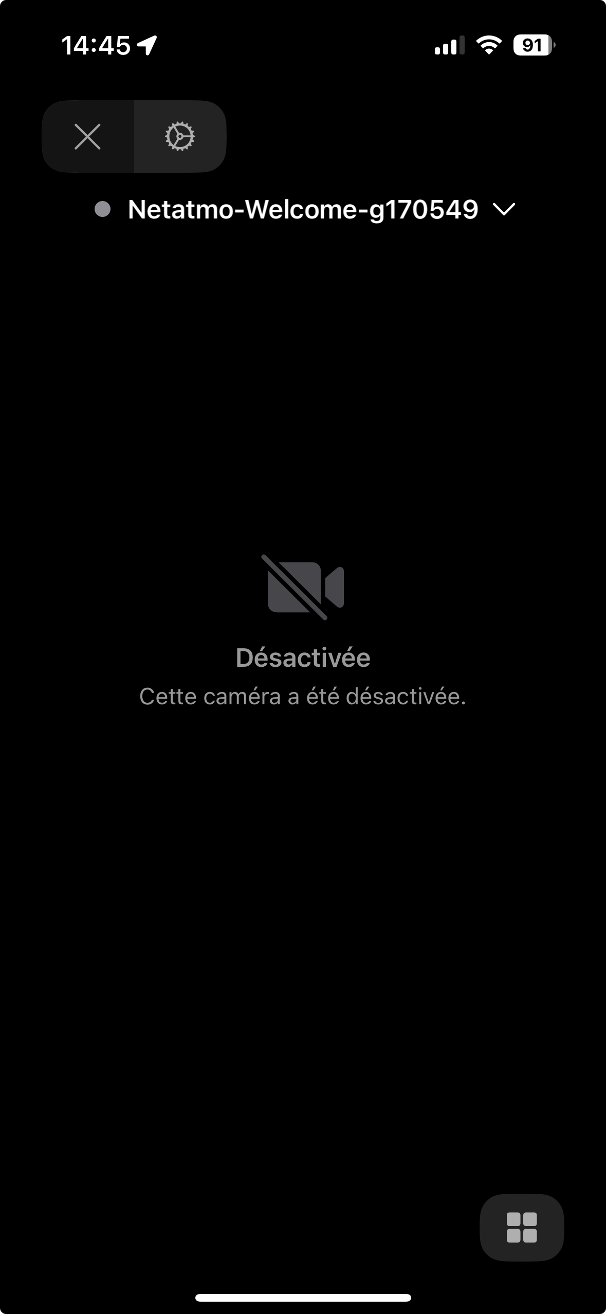 Dans l'application Security, ma caméra est bien listée (voir ci dessous) mais se retrouve en mode désactivé, ici aussi. Je ne sais vraiment plus quoi faire !