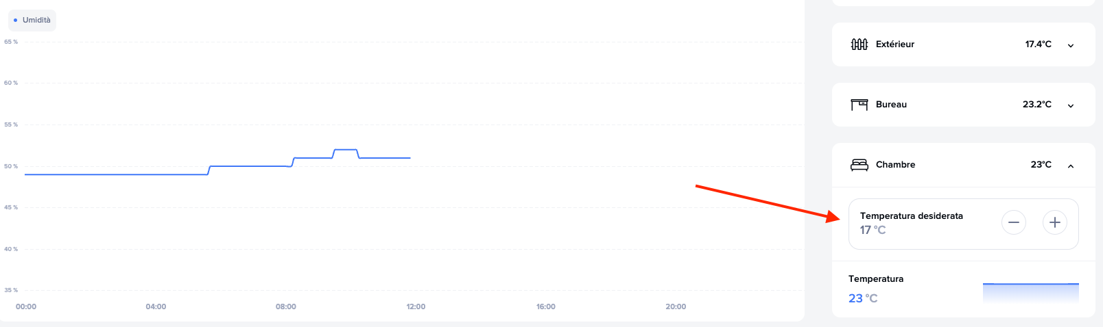 - Dalla dashboard, selezionare con un clic la stanza in cui si desidera modificare la temperatura.