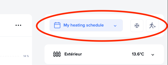 Per cambiare il programma di riscaldamento, andare nel menu in alto a destra della dashboard.