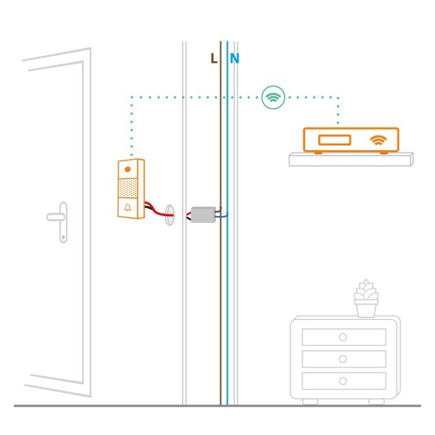 Il Videocitofono non è collegato a nessun campanello. Quando un visitatore suona il videocitofono, la suoneria squilla sul tuo telefono e può anche essere riprodotta sugli altoparlanti smart Apple, Alexa o Google!