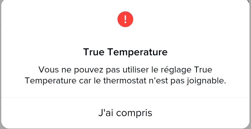 Impossible de régler la True Température : voir la copie d'écran ci-jointe :