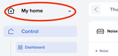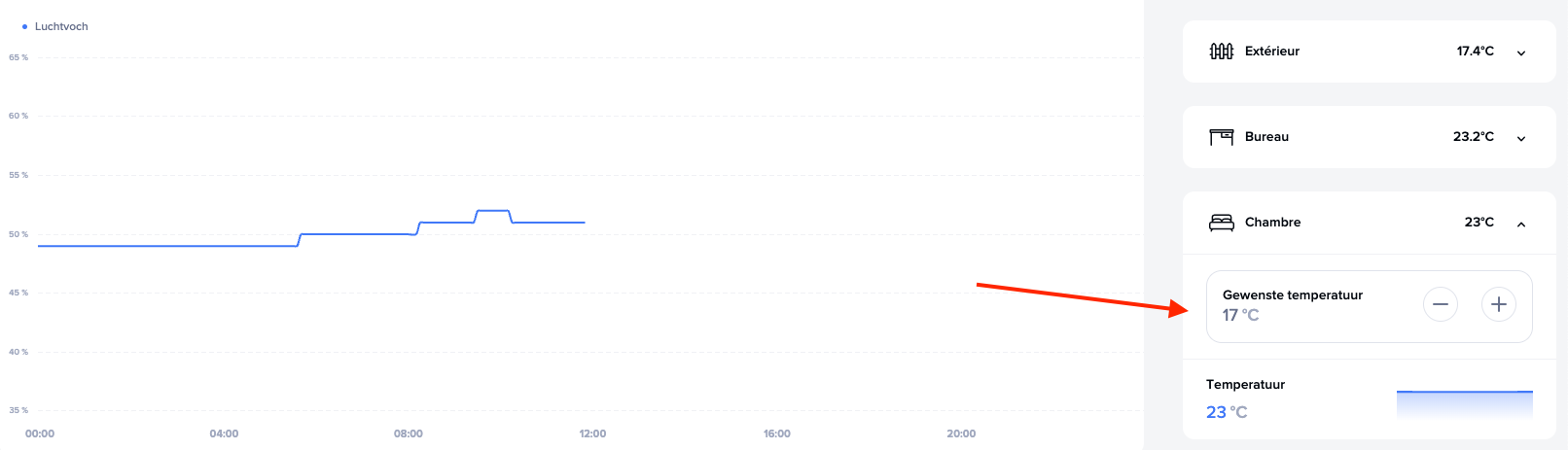 - Selecteer op je dashboard de ruimte waarvan je de temperatuur wilt wijzigen door erop te klikken in het menu aan de rechterkant.
